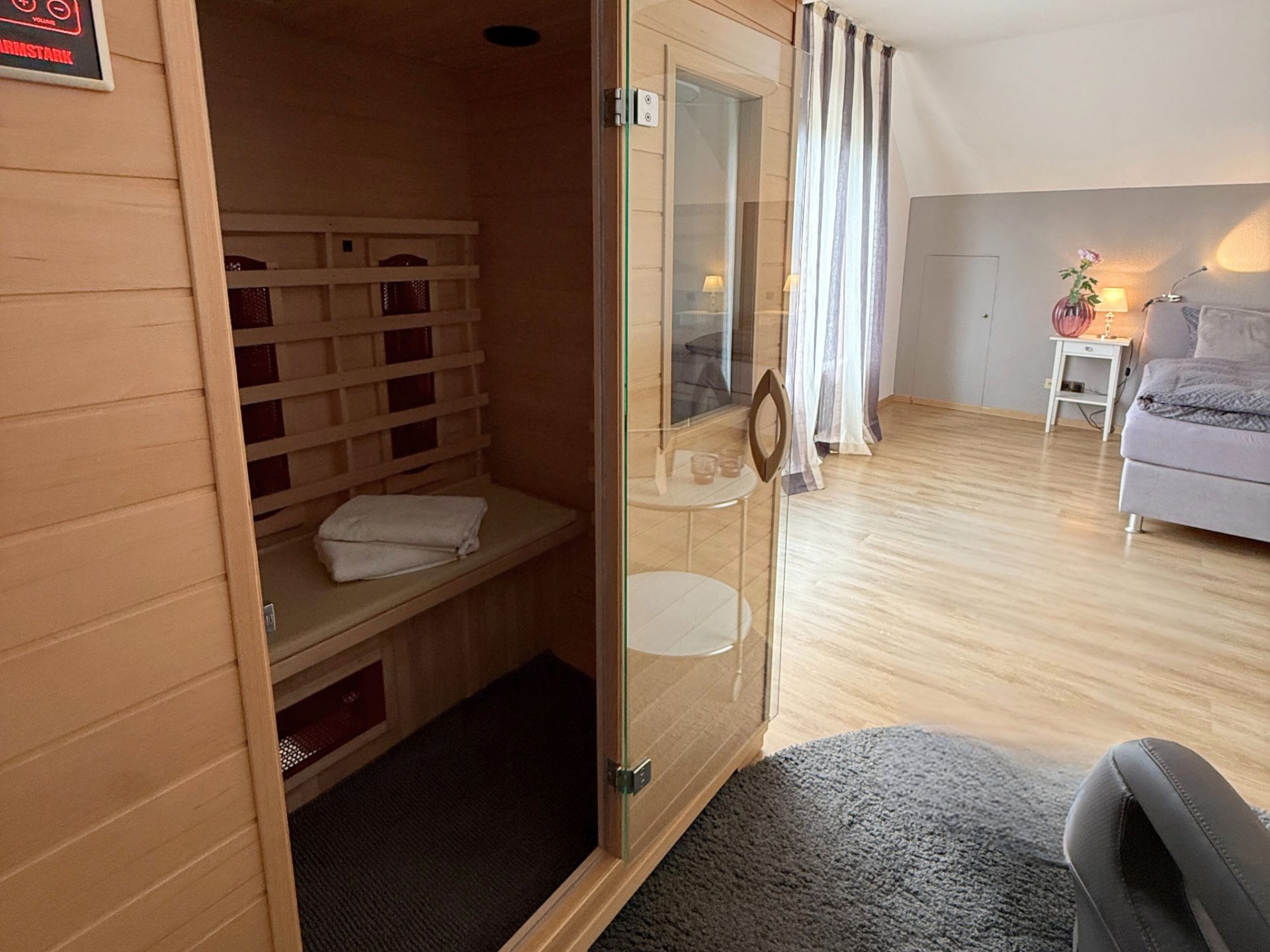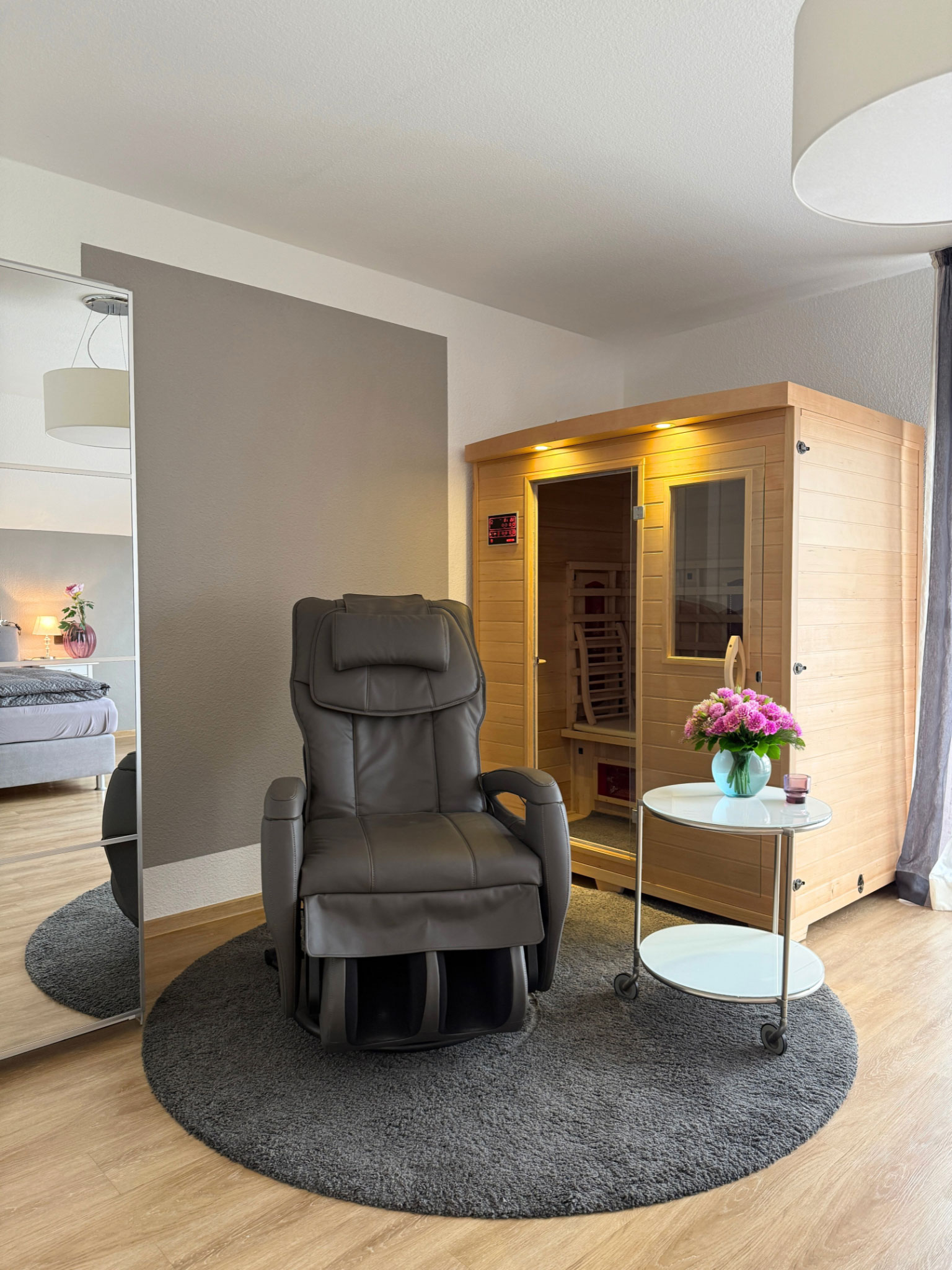 Entspannen Sie tiefenwirksam in der hochwertigen Infrarotsauna. Die wohltuende Wärme unterstützt die Regeneration und stärkt Ihr Wohlbefinden – wann immer Ihnen danach ist, ganz ohne Wartezeiten.